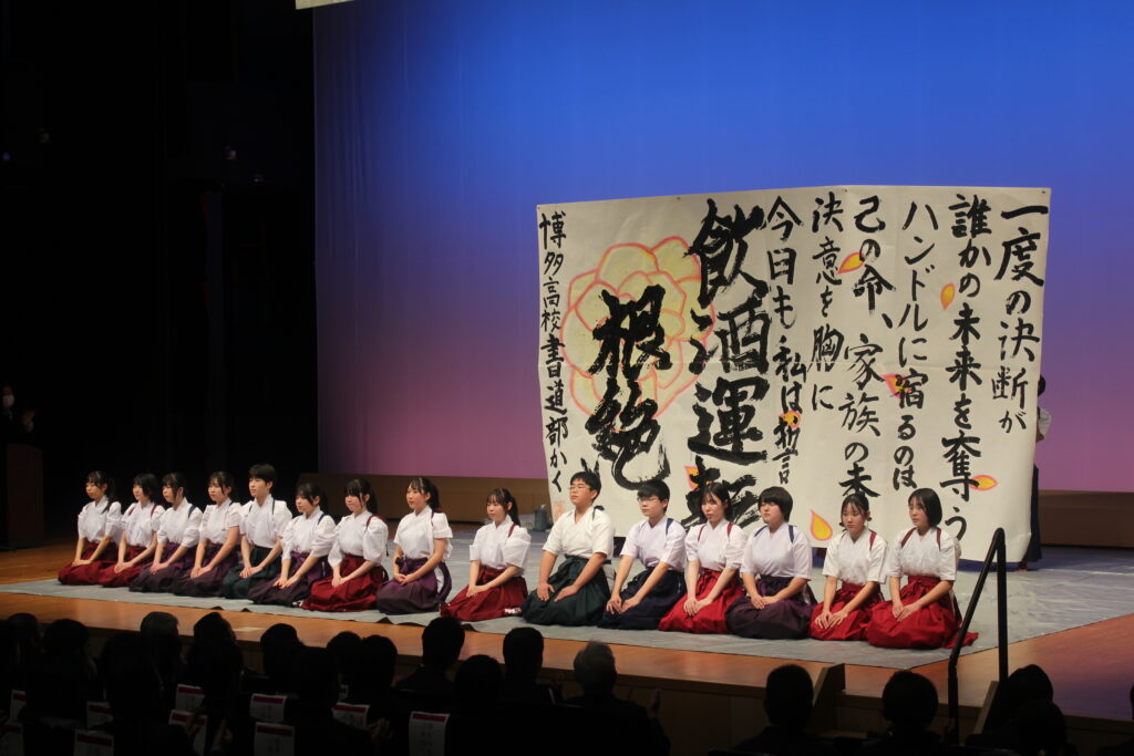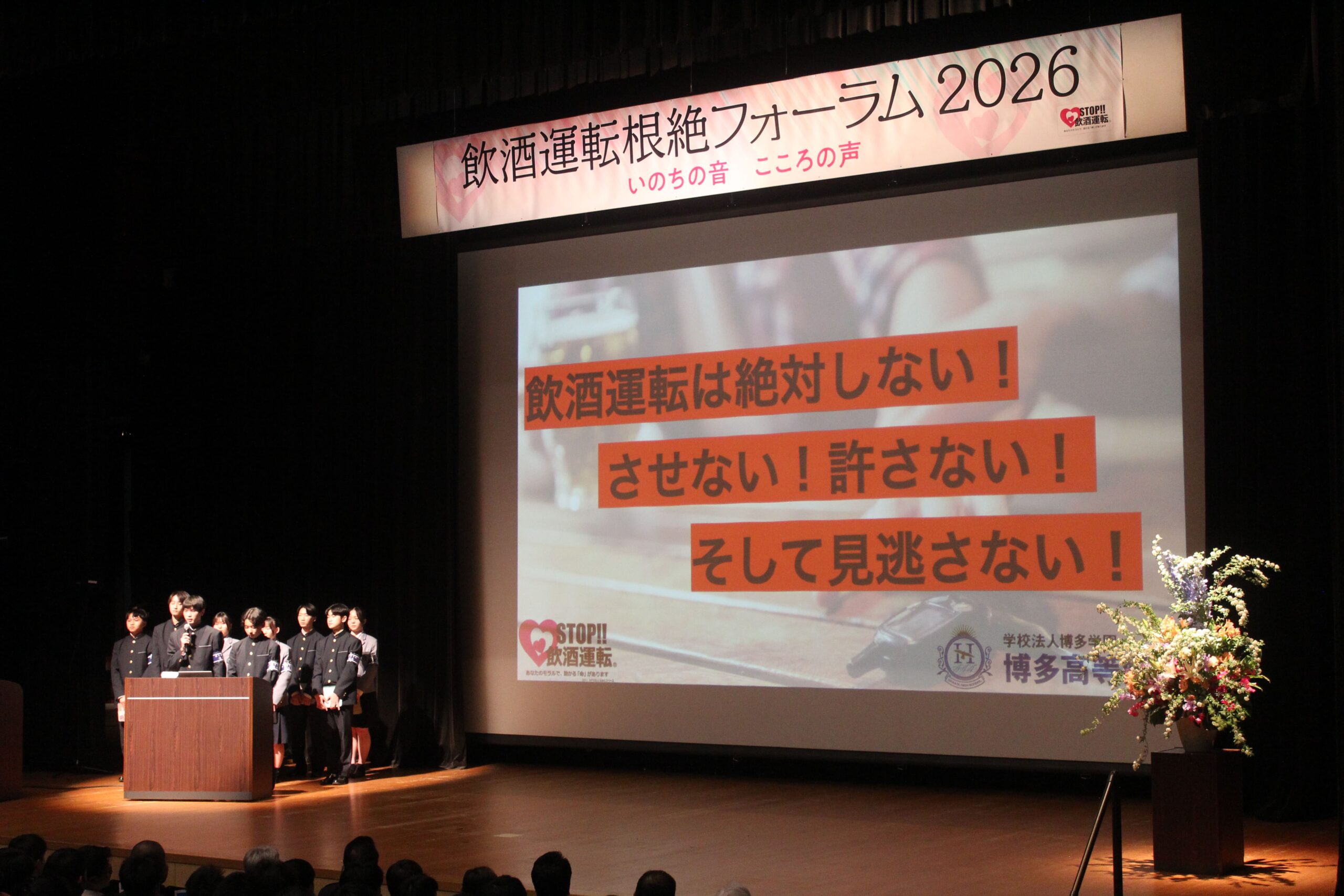 生徒会の添田隼矢さんは飲酒運転事故で失われた命に触れ「明日が当たり前に来ることはない」と発表。さらに「飲酒運転は絶対にしない、させない、許さない、そして見逃さない。この言葉と思いを胸に一日一日を大切に過ごしていきたい」と、固い決意を届けました。